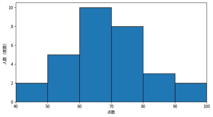 | 点数の範囲(階級) | 人数(度数) |