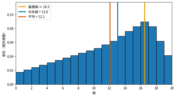 ヒストグラムと代表値の関係