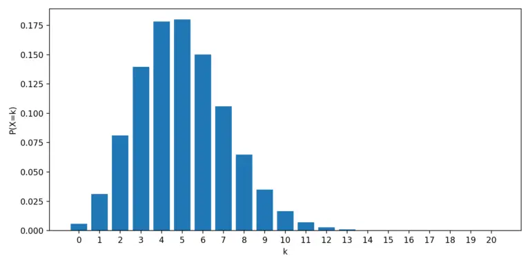 ある工場で、製品を100個検査します。過去のデータから、各製品が不良品になる確率は5%だとします。 100個のうち不良品は何個になるでしょうか。 平均的には5個になりそうですが、実際には3個だったり、8個だったりします。